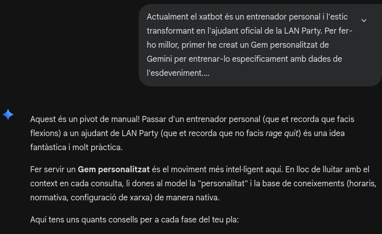 – **Canvi d’Identitat:** Transició integral del xatbot: de ‘Fitness Coach’ a **Assistent Tècnic Oficial de la LAN Party**.
