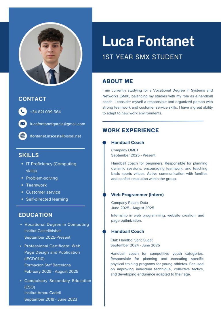 - Digital Portfolio: My website at lfontanet.inscastellbisbal.net is fully functional and contains all my academic and professional records.