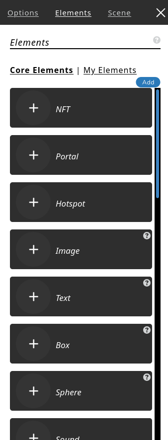 Aquest és el menú lateral que fem servir per personalitzar el tour, el que més farem servir es la part de hotspot per poder viatjar pel tour. Si volem decorar-lo podem posar imatges o videos.