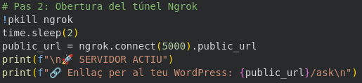 ngrok (El Túnel): Aquesta eina és vital. Com que estic treballant en local, ngrok crea un túnel que treu el meu servidor a Internet. Així, el WordPress pot “parlar” amb el meu ordinador sense haver de pagar un hosting car.