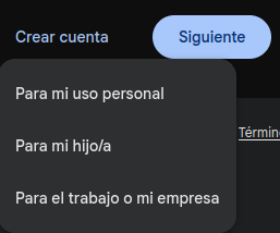 Un cop que li donem a “Crear cuenta”, ens sortirà un desplegable per si vols crear el compte per a tu mateix, per al teu fill o per un negoci.