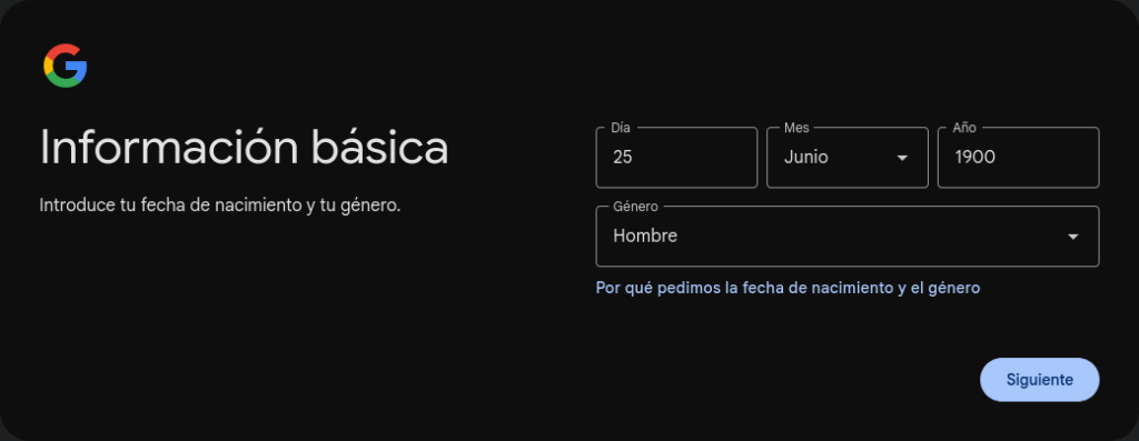 Tot seguit, ens demanarà informació bàsica com nom, cognoms, gènere, data de naixement,
