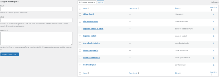 Creació d’etiquetes per categoritzar les entrades
