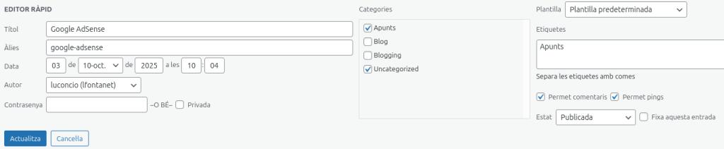 Anem a l’entrada, seleccionem “edició ràpida” i a l’apartat etiquetes escriurem l’etiqueta que hem creat.