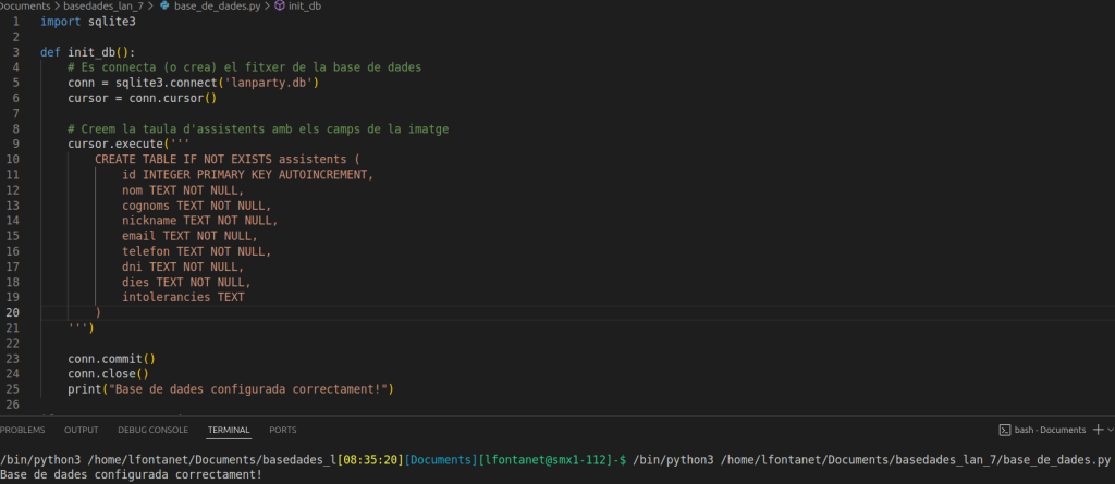 La base de dades s’ha configurat per emmagatzemar tota la informació crítica de la LAN Party: